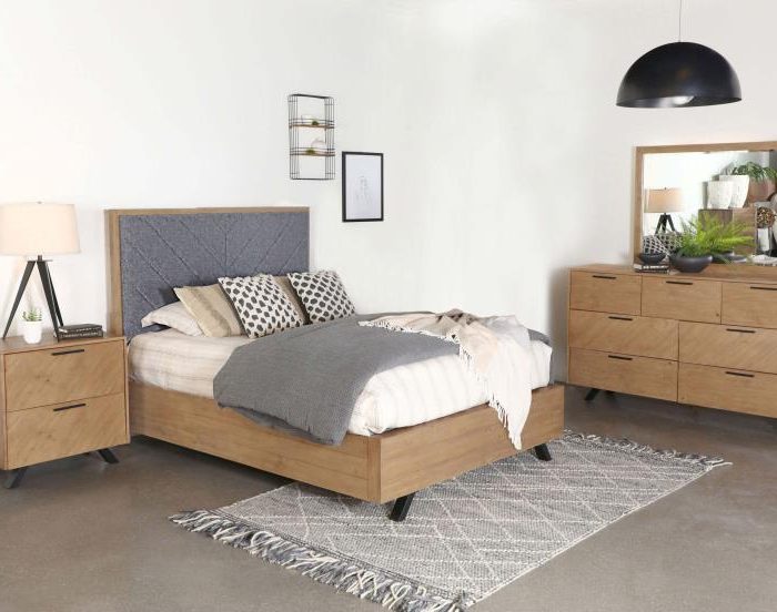 Taylor 4-Piece Eastern King Bedroom Set Light Honey Brown And Grey