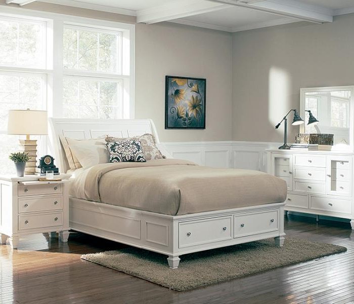 5-Piece Beach Storage Bedroom Set With Sleigh Headboard California Kin