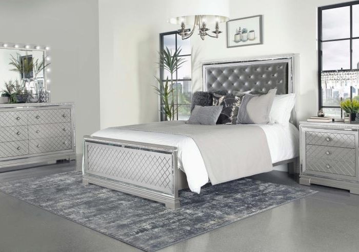 4-Piece Upholstered Tufted Bedroom Set Metallic Queen