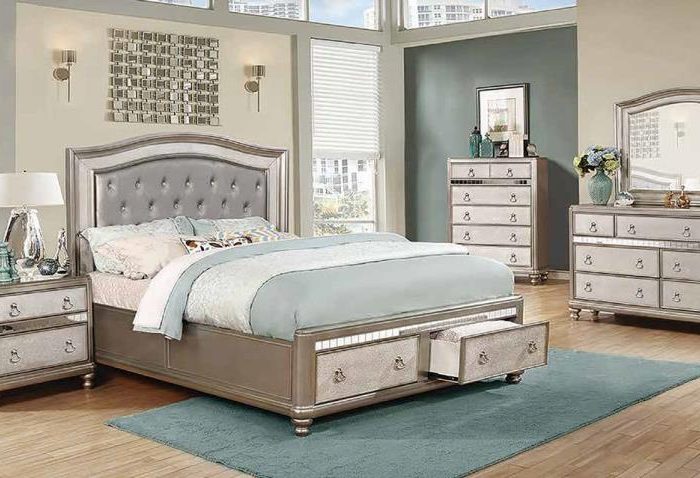5-Piece Game Storage Bedroom Set Metallic Platinum King
