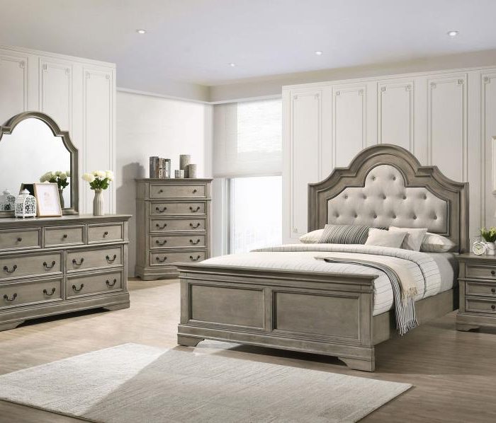 5-Piece Bedroom Set With Upholstered Arched Headboard Wheat California