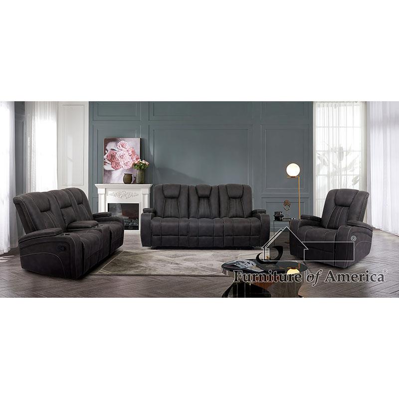 Experience the luxurious comfort and contemporary style of this multi-functional sofa with two recliners. The middle seatback features a drop-down table with reading lights, two cup holders, a USB charging port, and an A,C electrical outlet. The arms lift up exposing a storage compartment with ample storage for remotes, phones, and other accessories. The cover is a soft, luxurious, and durable fabric with an accent stitch to highlight the sleek design.