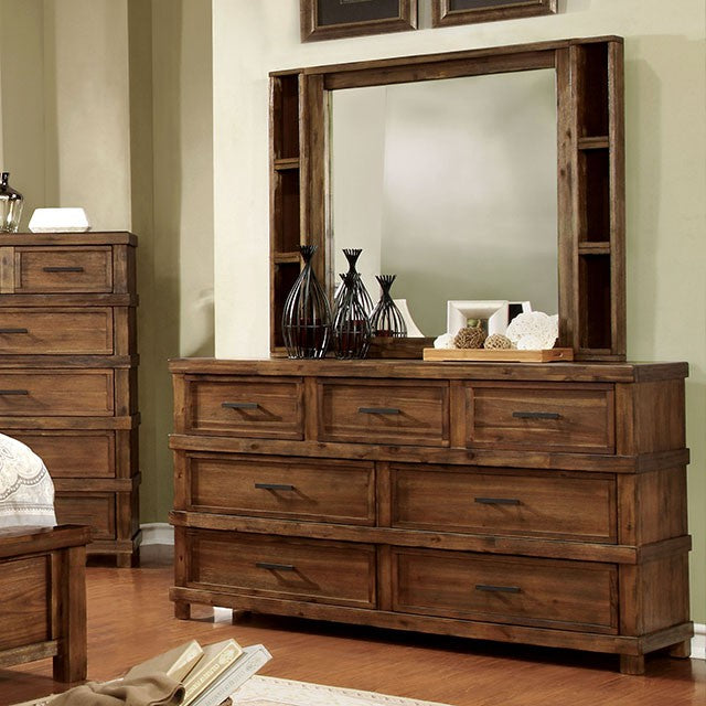 With a soft antique oak finish, this stunning bed set is finely crafted with smooth carved wood detailing. Simple bar handles enhance the neutral tones of this set.